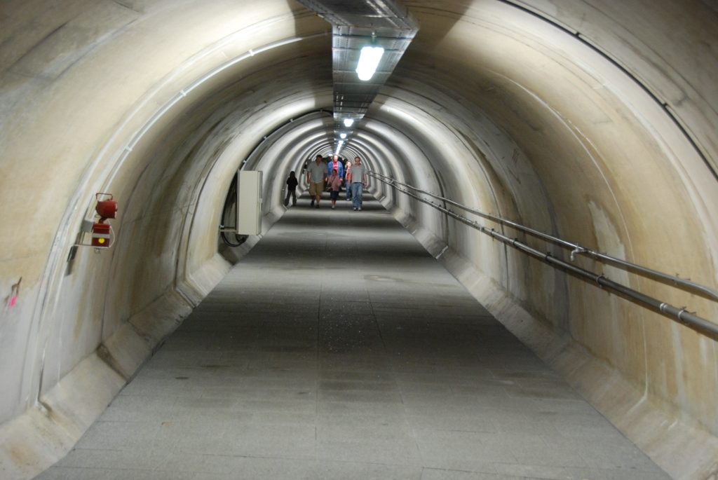 Durch einen langen Stollen ging es unter dem Wasser hindurch zum Turm mitten im Stausee. Foto: Gruber