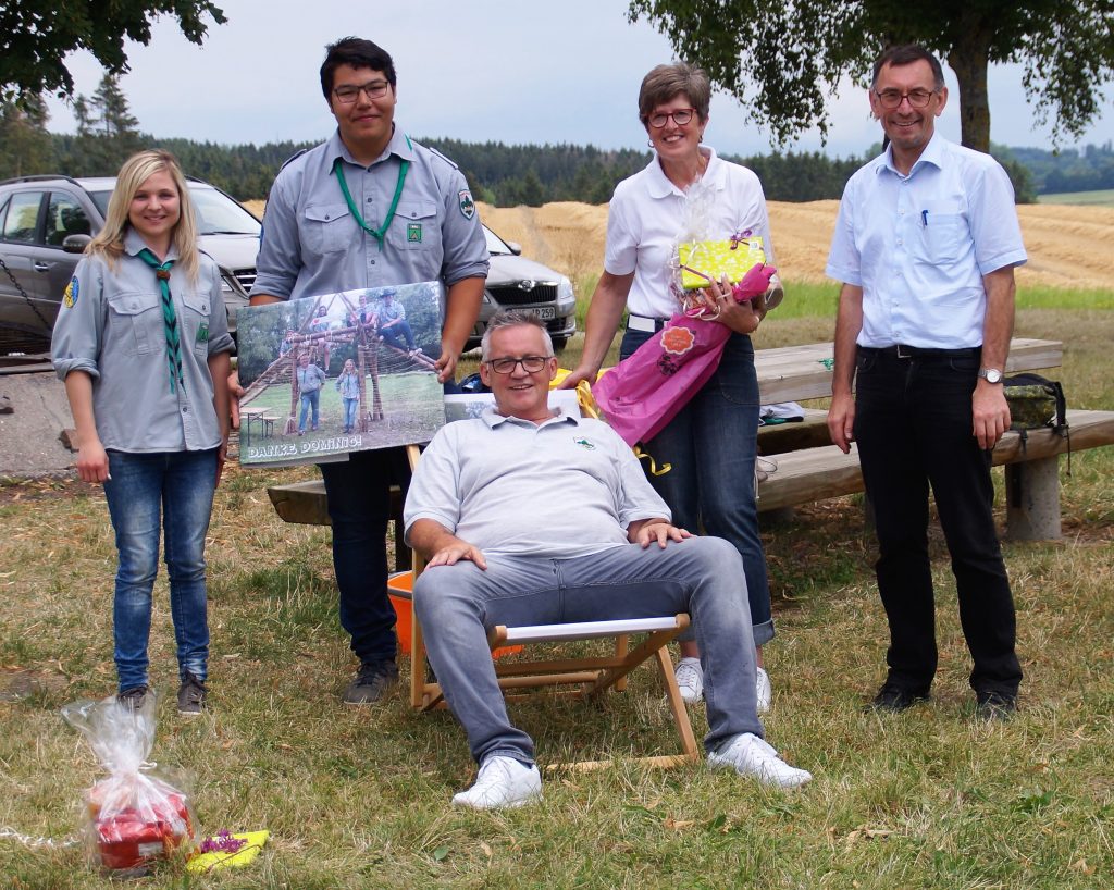 Kurz vor den Sommerferien haben wir bei den Pfadfindern Kings Scouts zwei treue und langjährige Mitarbeiter verabschiedet. Dominic Chhim hat sich seit der Gründung vor knapp 10 Jahren engagiert. Erst als Teilnehmer und später als Leiter. Er beginnt nun ein Theologiestudium. Die Pfadfinderarbeit unserer Kirchengemeinde ist aufs Engste mit dem Namen Gerhard Gamerdinger verbunden. Georg Neumann, gewählter Vorsitzender der Ev. Kirchengemeinde, erinnerte an die Anfänge der Pfadfinder Kings Scouts vor nunmehr knapp zehn Jahren innerhalb der Ev. Kirchengemeinde und die fast 25jährige Pfadfinderarbeit von Gerhard Gamerdinger insgesamt in verschiedenen Stämmen. Aus diesen Anfängen ist eine umfangreiche Arbeit entstanden, die ohne Gerhard und Angelika Gamerdinger nicht so geworden wäre, wie sie ist. Daher danken wir beiden für ihren unermüdlichen Einsatz bei Camps, Stammtreffs, Gemeindefesten und vielen weiteren Aktionen, zum Beispiel auch bei der Feld- und Waldputzete. Bereits vor einiger Zeit wurde die Gesamtleitung des Empfinger Pfadfinderstamms in die Hände von Mirjam Plocher gelegt. Der Stamm bedankte sich mit einem Liegestuhl auf dem in riesigen Buchstaben „DANKE GERHARD“ steht. Diesem Dank schließe ich mich im Namen der gesamten Kirchengemeinde und im Namen von Georg Neumann an.Wir wünschen den Pfadfinderleitern, die nun aufhören, aber auch allen Pfadfindern der Kings Scouts für das Bundescamp und Ihnen allen für die Sommerzeit und das Unterwegssein GOTTES SEGEN!