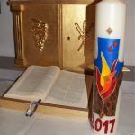 Seit Ostersonntag leuchtet sie bei den Gottesdiensten in der Kapelle: Die neue Osterkerze, die wir von der Katholischen Seelsorgeeinheit Empfingen Dießener-Tal geschenkt bekommen haben. Es ist eine schöne Tradition und wir haben uns beim Ostergottesdienst sehr gefreut, als die Kerze zum ersten Mal angezündet wurde. Das Motiv des Osterfeuers auf der Kerze, wie die Kerze selbst, erinnern nun ein Jahr lang an das Osterlicht, das seit dem Ostermorgen in unsere Herzen leuchten möchte. „Jesus Christus spricht: Ich bin das Licht der Welt. Wer mir nachfolgt, der wird nicht wandeln in der Finsternis, sondern wird das Licht des Lebens haben“ (Johannes 8, 12). Vielen Dank an diejenigen, die die Kerze gestaltet haben und danke an die Seelsorgeeinheit für dieses deutliche Zeichen der ökumenischen Verbundenheit!
